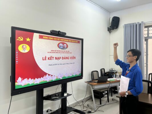 Lễ kết nạp đoàn viên ưu tú Lê Trần Nhật Anh đã được chi bộ Khoa Khoa học Xã hội và Nghệ thuật tổ chức vào ngày 24/10/2025. Đây là dấu mốc ý nghĩa, ghi nhận quá trình rèn luyện, cống hiến và trưởng thành của một đoàn viên trẻ giàu lý tưởng.